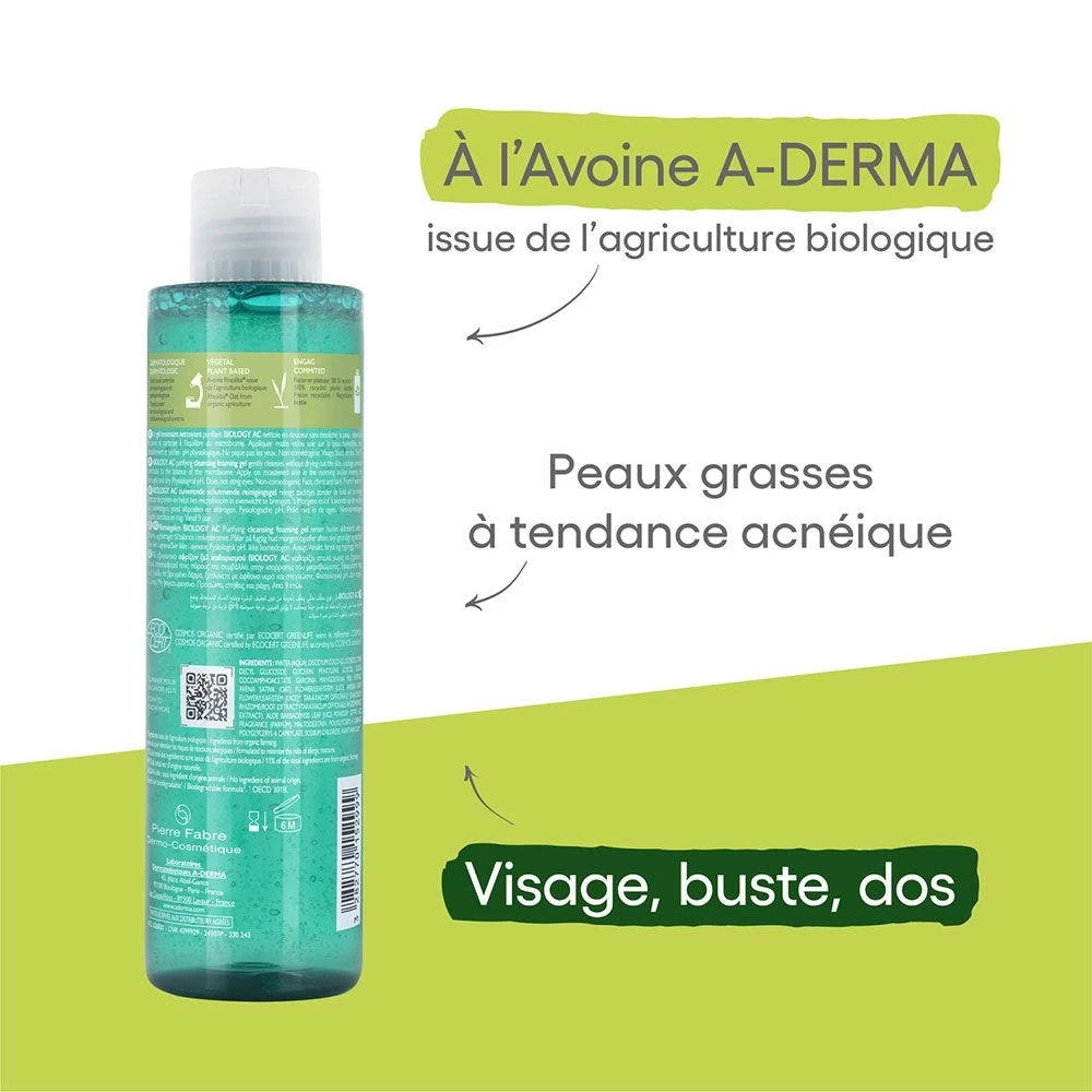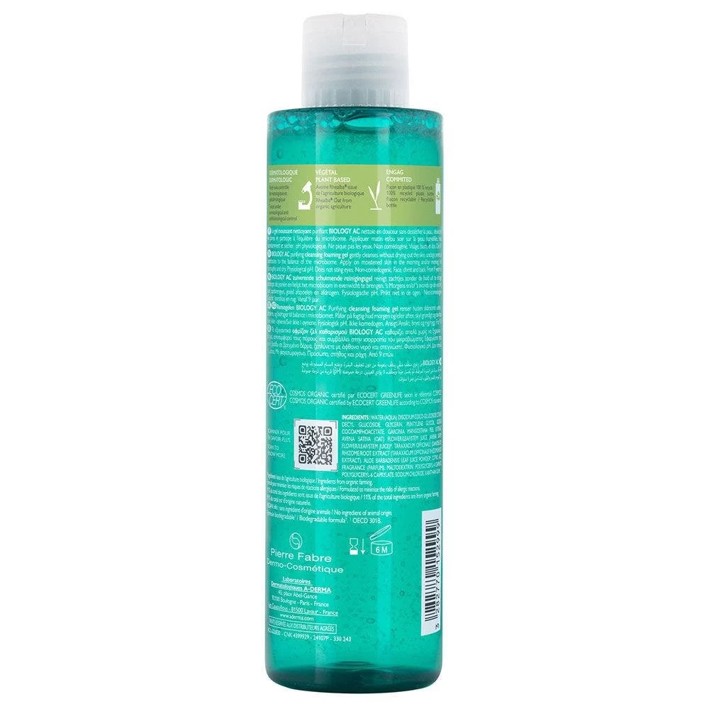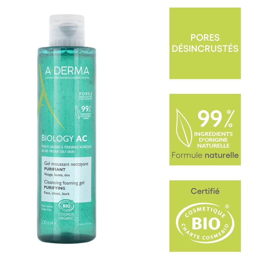 BIOLOGY AC Gel schiumogeno dermatologico e bio certificato, deterge delicatamente la pelle grassa a tendenza acneica, senza seccarla, grazie al suo pH fisiologico e alla sua formula senza sapone.