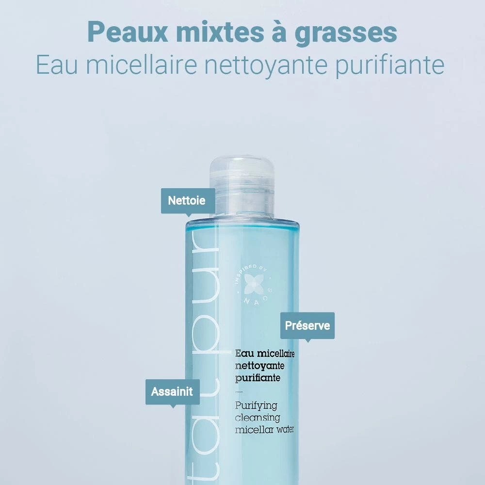 L’Acqua Micellare Detergente, ricca di micelle, cattura le impurità e il Make-up da occhi, labbra e viso.