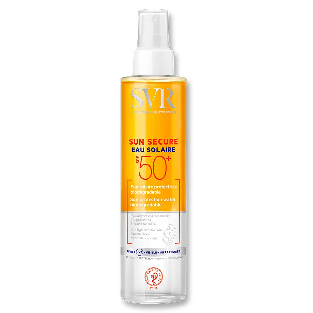 L’Acqua solare protettiva SUN SECURE SPF50+ garantisce un’elevata protezione solare dermatologica alla pelle ipersensibile al sole.