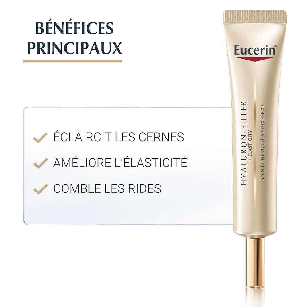 Eucerin Hyaluron-Filler + Elasticity Contorno Occhi SPF 15 è stato appositamente creato per ridurre le rughe profonde, aumentare l’elasticità e illuminare lo sguardo delle pelli mature.