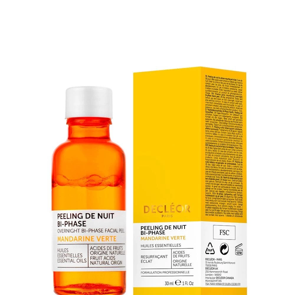 Decléor Bi-Phase Night Peel combina il potere dell’olio essenziale di Mandarino Verde con l’acido glicolico e gli acidi naturali della Frutta in una miscela professionale. Al risveglio la pelle è radiosa e rinnovata. L’incarnato è rivitalizzato.