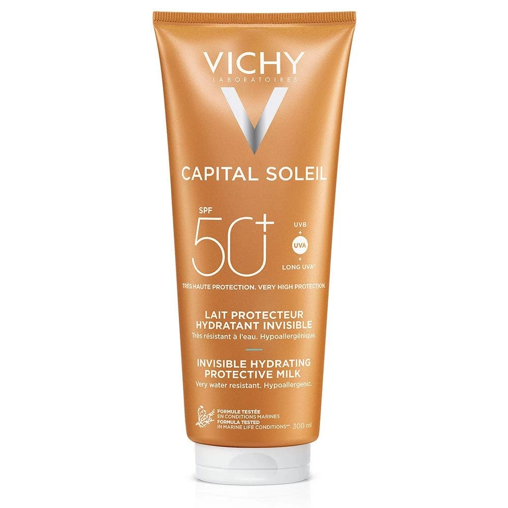 Vichy Capital Soleil Lait SPF50+ 300 ml è una lozione ad altissima protezione solare che protegge la pelle dai raggi UV a livello cellulare.