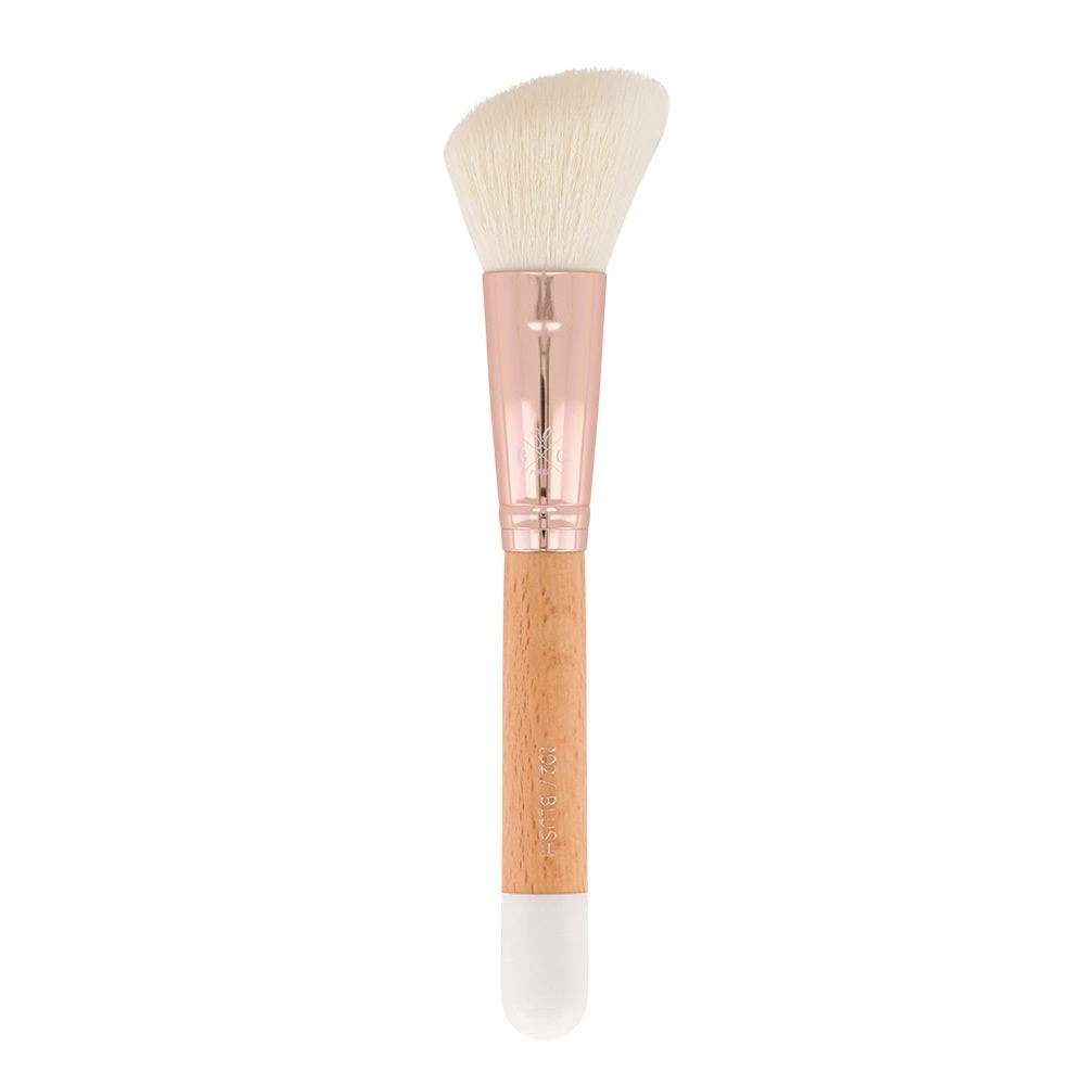 Il pennello per fard di Bachca è ideale per l’applicazione di polveri compatte o sfuse. La sua forma smussata si adatta alle curve del viso per un’applicazione perfetta su zigomi e bordi. Le sue setole dense in fibra sintetica sono incomparabilmente morbide e trattengono perfettamente la polvere, permettendole di fissarsi sul viso.