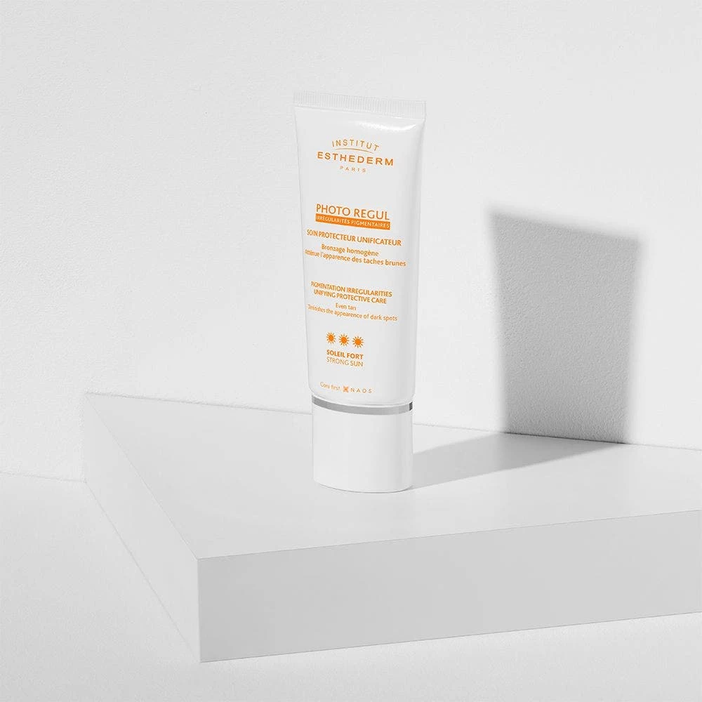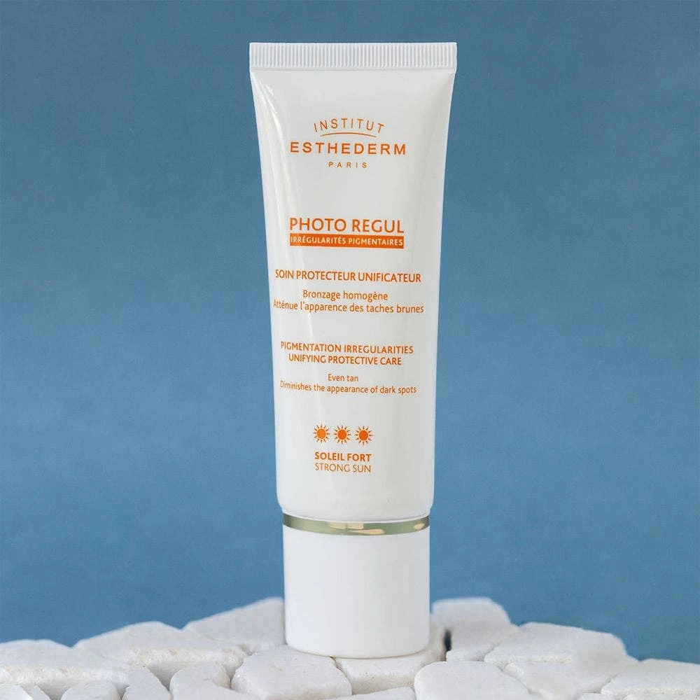 La crema solare Photo Regul riduce la comparsa delle macchie scure uniformando il contrasto tra le zone iperpigmentate e la pelle abbronzata.