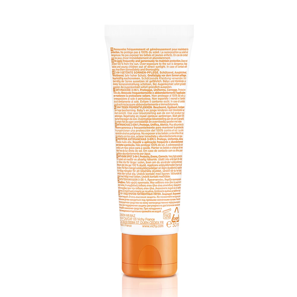 – offre un’elevata protezione solare SPF50+ grazie alla sua formula arricchita con filtri UVA/B ad ampio spettro associati all’acqua termale di Vichy;